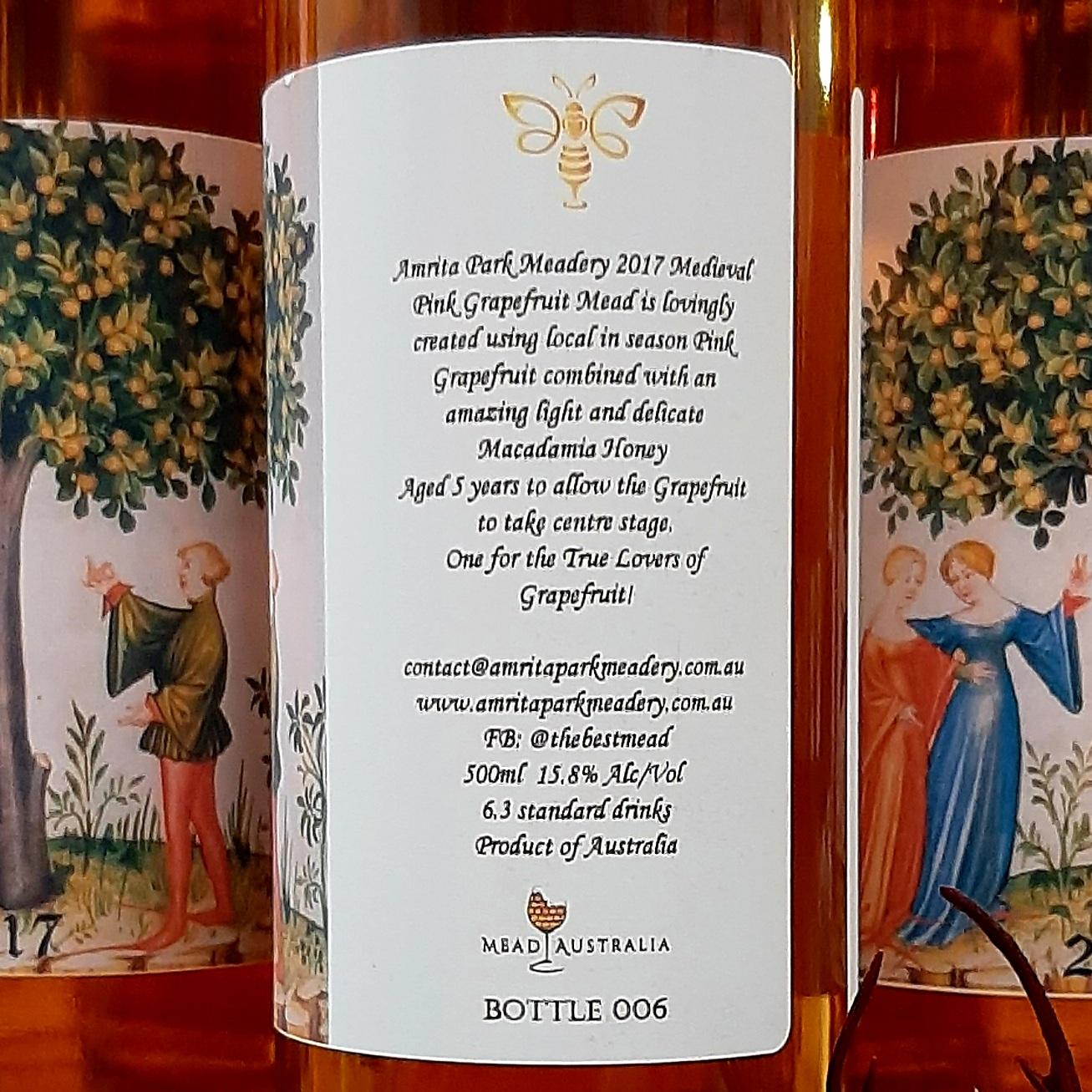 Local Pink Grapefruits & Macadamia Honey, aging since 2017. this Mead will not last long.
